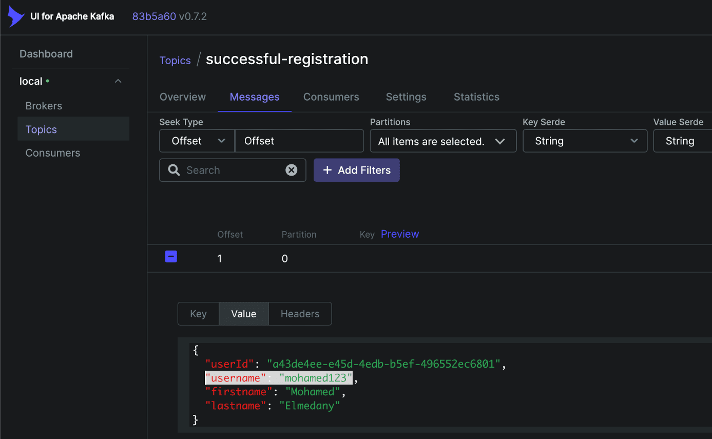 image: Base image.container_name: Container name for easy management.ports: Port mapping inside the container and exposed to the host.environment:KAFKA_CLUSTERS_0_NAME: Name of the Kafka cluster.KAFKA_CLUSTERS_0_BOOTSTRAPSERVERS: Where is the Kafka server.