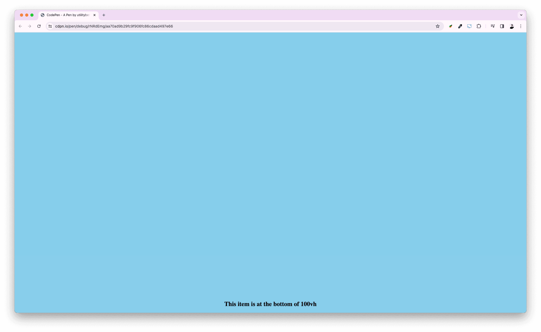 Notice, how our text is not aligned to the bottom on the mobile browser at page load. That’s because a 100vh is 100% of the viewport height when the address bar is collapsed. Which means it can result in unwanted behavior in some cases.