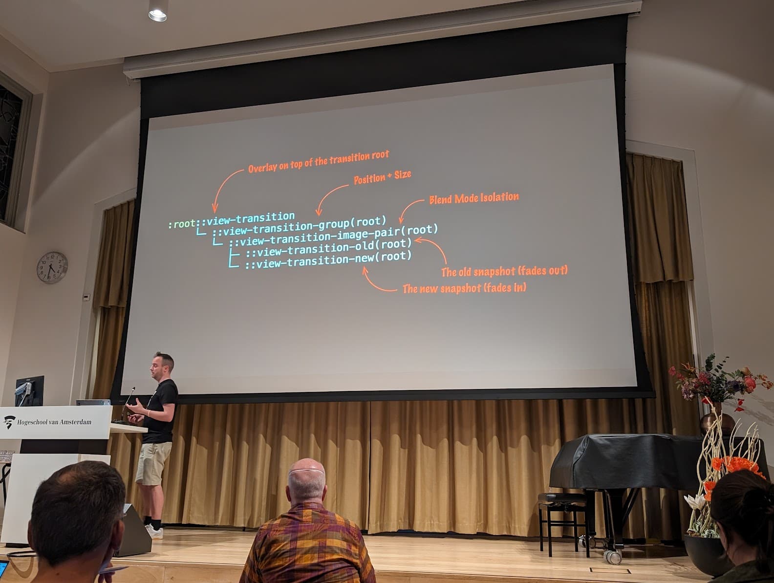 This followed up with a talk about Multi-page view transition by Bramus and Container queries by Miriam Suzanne.